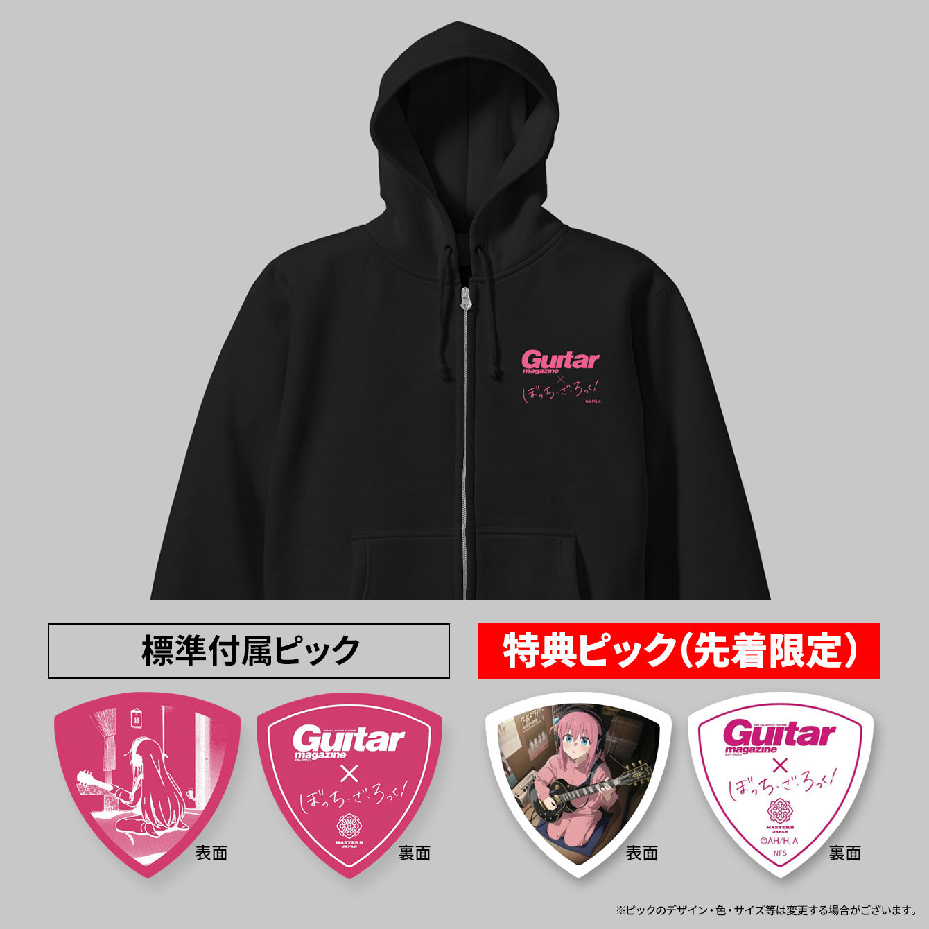 ギター・マガジン2025年11月号表紙特集“ぼっち・ざ・宅録!”のコラボ・アパレルの第二弾として、描き下ろしイラストがZIPパーカーになって登場! “結束バンド”が愛用するピックと同モデルをオリジナル・デザイン版でセットします。