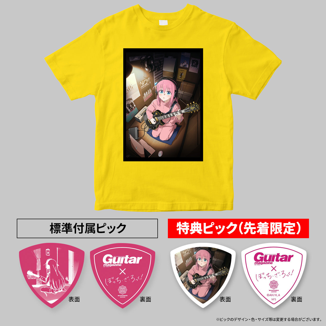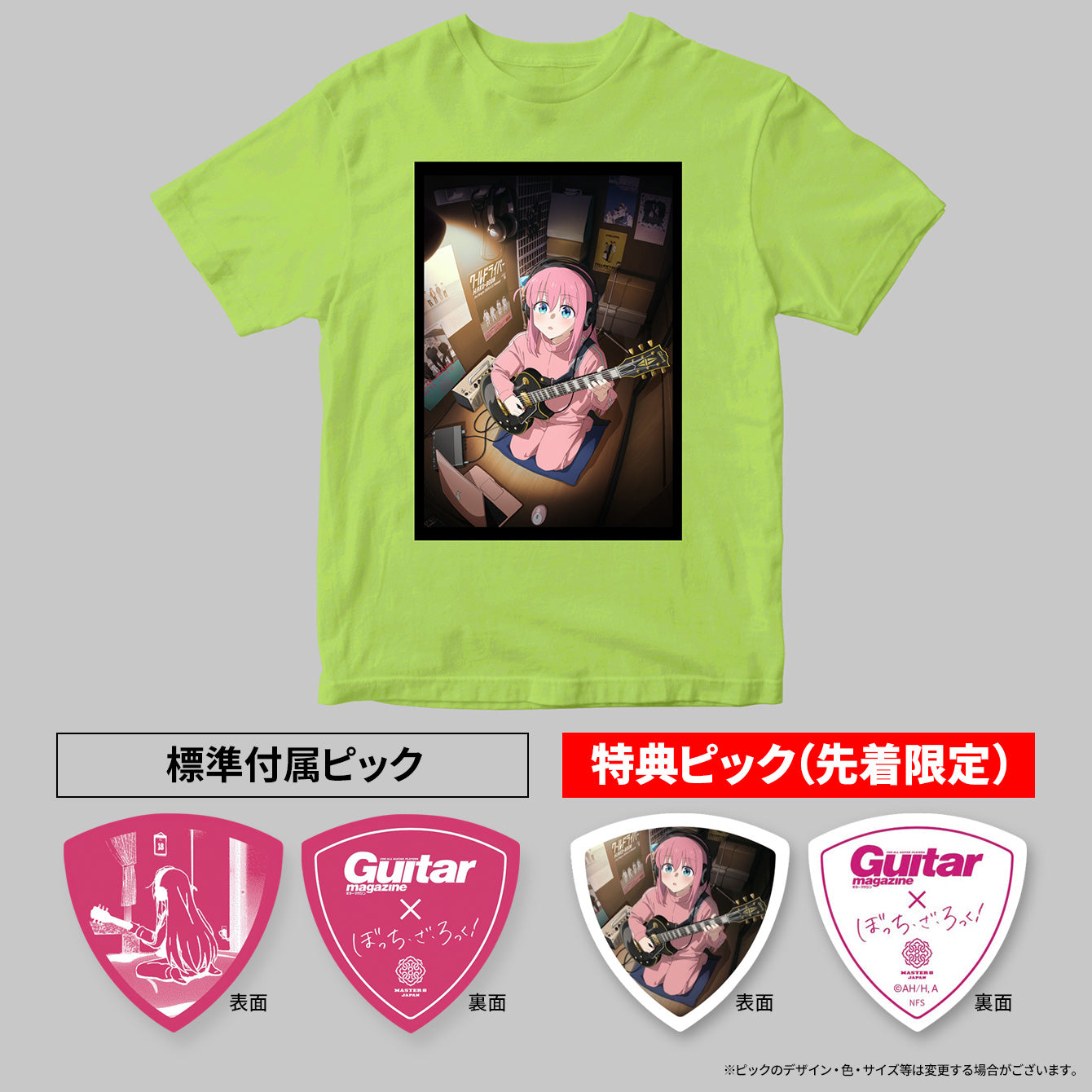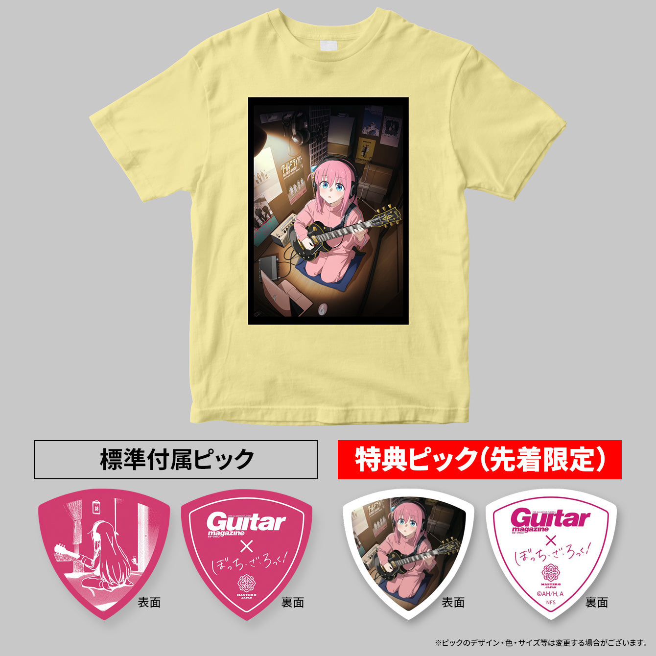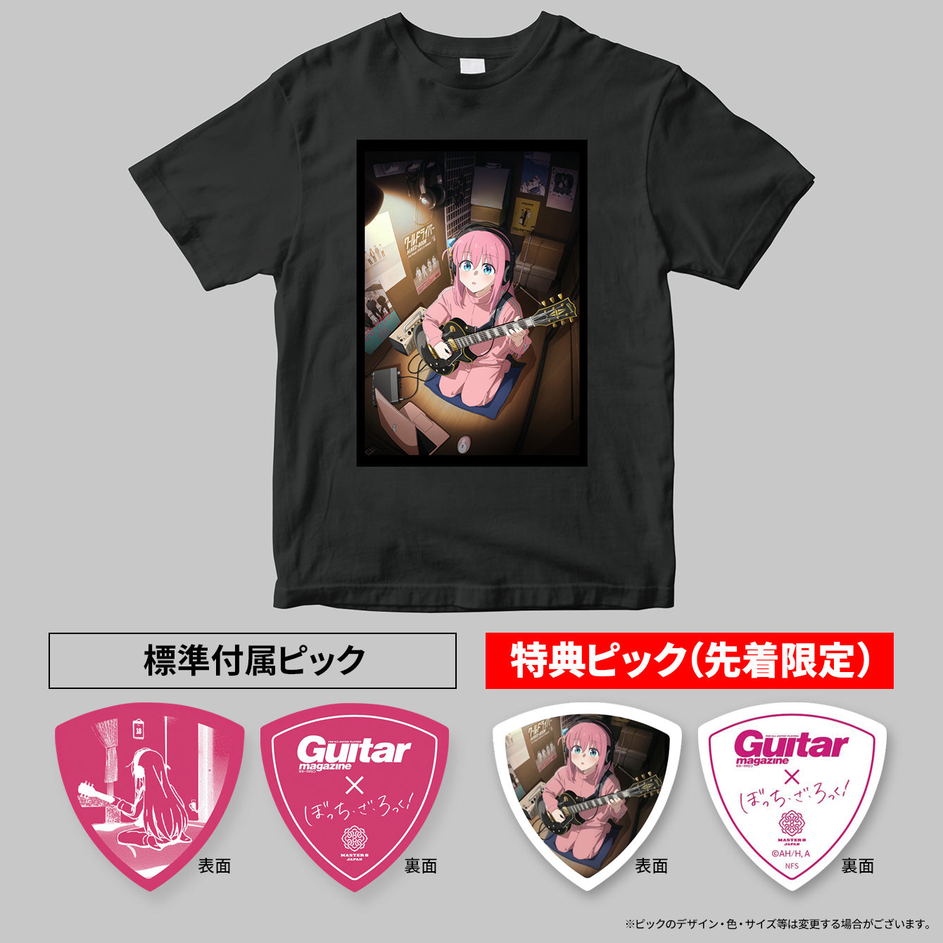ギター・マガジン2025年11月号表紙特集“ぼっち・ざ・宅録!”の描き下ろしイラストが半袖Tシャツになって登場。さらに、“結束バンド”が愛用するピックと同モデルをオリジナル・デザイン版でセットします。