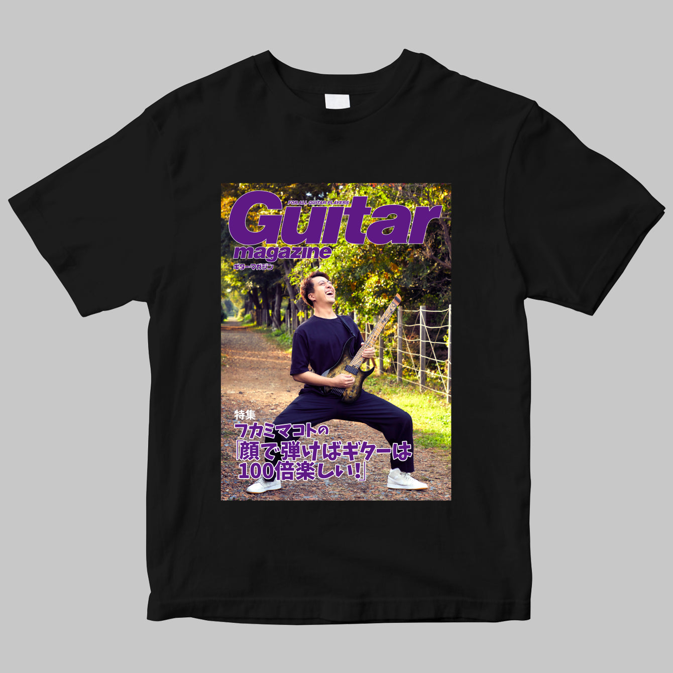 人気YouTuber、フカミマコトさんの書籍『フカミマコトの「顔で弾けばギターは100倍楽しい!」』の発売を記念して、オリジナルTシャツが登場!フカミさんが見た初夢(ギター・マガジンの表紙に登場)の画像となっています!
