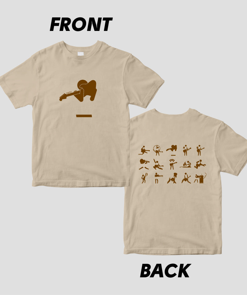 ギター・マガジンの連載“ピクトグラムで愛でるギター・パフォーマンスの世界”が、Tシャツになりました! こちらは両面パターン。ギタリストの有名なステージ・アクションやポーズが表に、背面には一覧の計15バリエーションをラインナップ。カラバリもたくさん用意しています。ネタにも、プレゼントにも、お子様に着せてもOK。ぜひ買ってね!