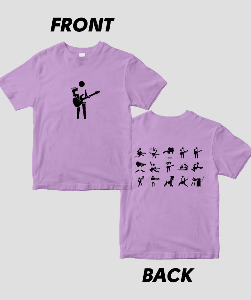 ギター・マガジンの連載“ピクトグラムで愛でるギター・パフォーマンスの世界”が、Tシャツになりました! こちらは両面パターン。ギタリストの有名なステージ・アクションやポーズが表に、背面には一覧の計15バリエーションをラインナップ。カラバリもたくさん用意しています。ネタにも、プレゼントにも、お子様に着せてもOK。ぜひ買ってね!