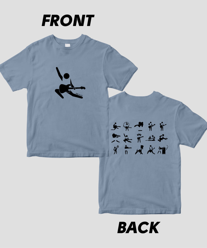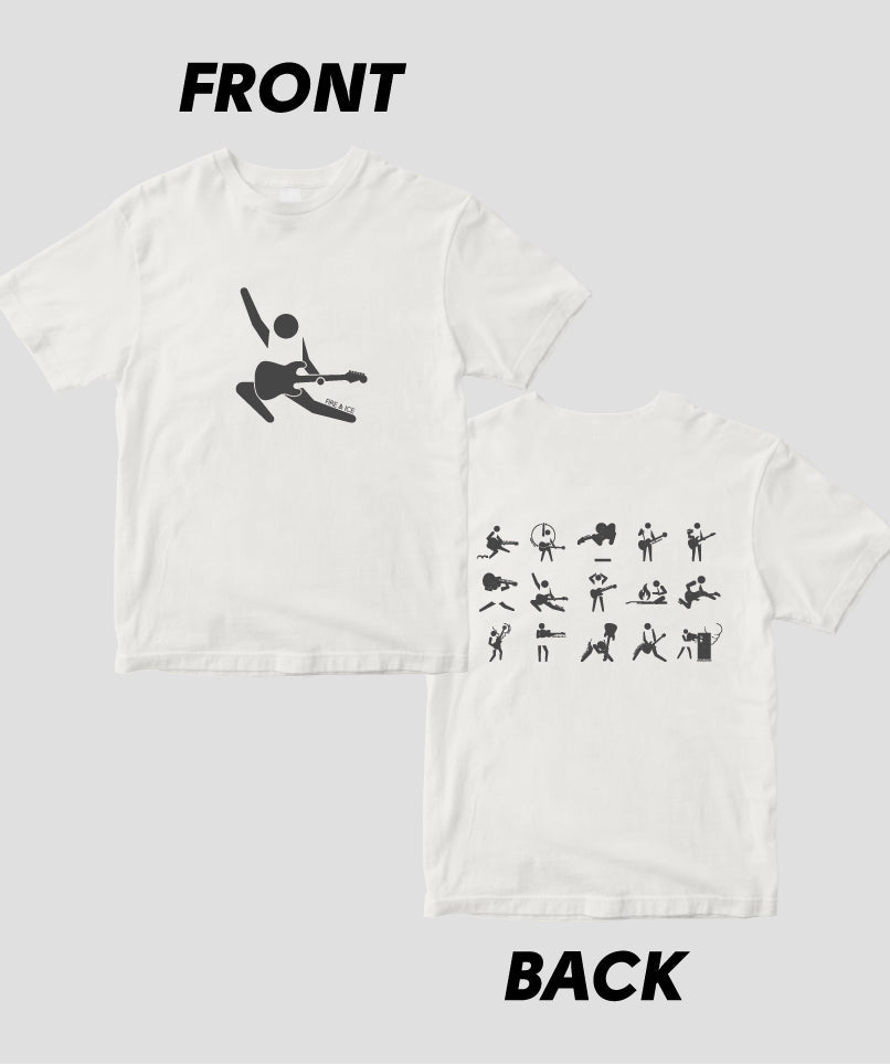ギター・マガジンの連載“ピクトグラムで愛でるギター・パフォーマンスの世界”が、Tシャツになりました! こちらは両面パターン。ギタリストの有名なステージ・アクションやポーズが表に、背面には一覧の計15バリエーションをラインナップ。カラバリもたくさん用意しています。ネタにも、プレゼントにも、お子様に着せてもOK。ぜひ買ってね!
