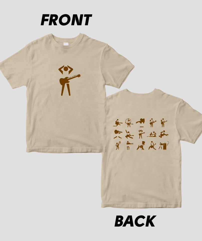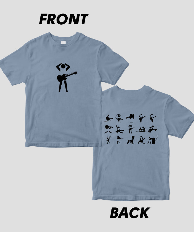 ギター・マガジンの連載“ピクトグラムで愛でるギター・パフォーマンスの世界”が、Tシャツになりました! こちらは両面パターン。ギタリストの有名なステージ・アクションやポーズが表に、背面には一覧の計15バリエーションをラインナップ。カラバリもたくさん用意しています。ネタにも、プレゼントにも、お子様に着せてもOK。ぜひ買ってね!