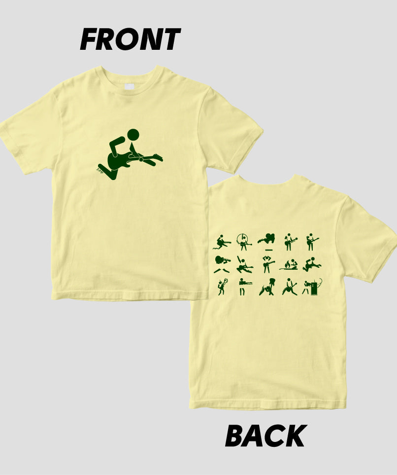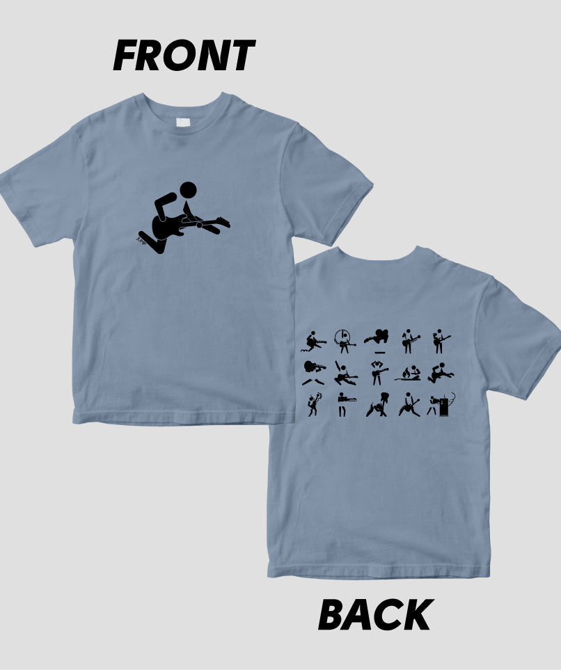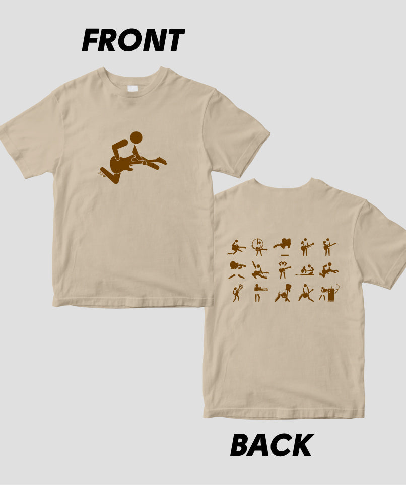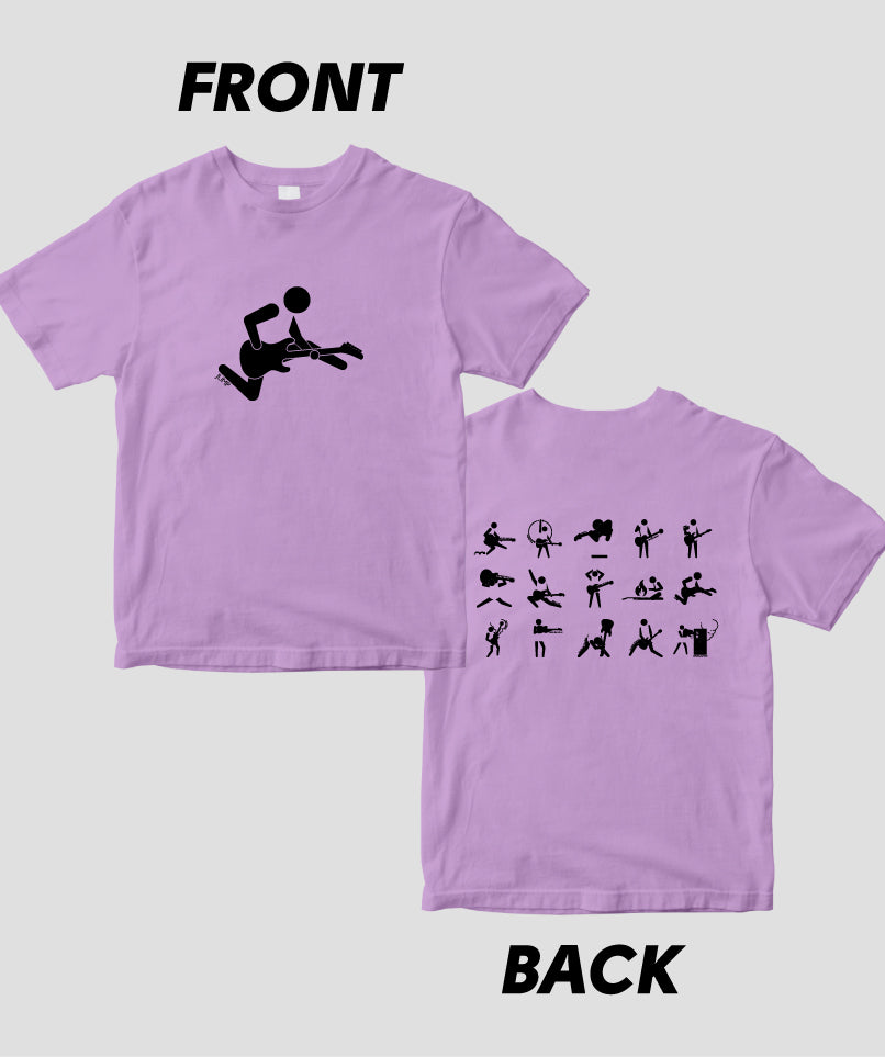 ギター・マガジンの連載“ピクトグラムで愛でるギター・パフォーマンスの世界”が、Tシャツになりました! こちらは両面パターン。ギタリストの有名なステージ・アクションやポーズが表に、背面には一覧の計15バリエーションをラインナップ。カラバリもたくさん用意しています。ネタにも、プレゼントにも、お子様に着せてもOK。ぜひ買ってね!