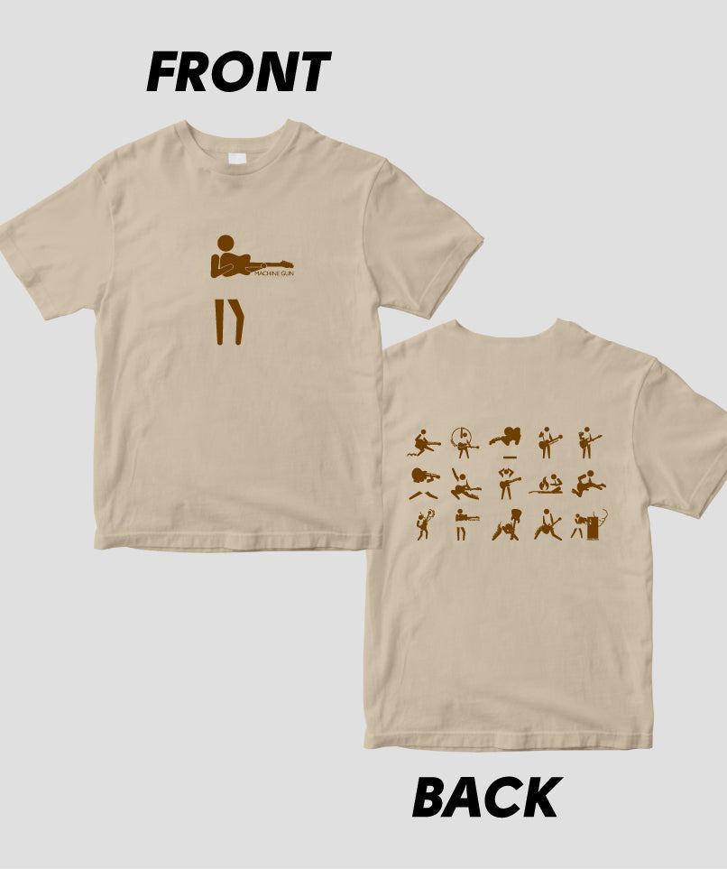 ギター・マガジンの連載“ピクトグラムで愛でるギター・パフォーマンスの世界”が、Tシャツになりました! こちらは両面パターン。ギタリストの有名なステージ・アクションやポーズが表に、背面には一覧の計15バリエーションをラインナップ。カラバリもたくさん用意しています。ネタにも、プレゼントにも、お子様に着せてもOK。ぜひ買ってね!